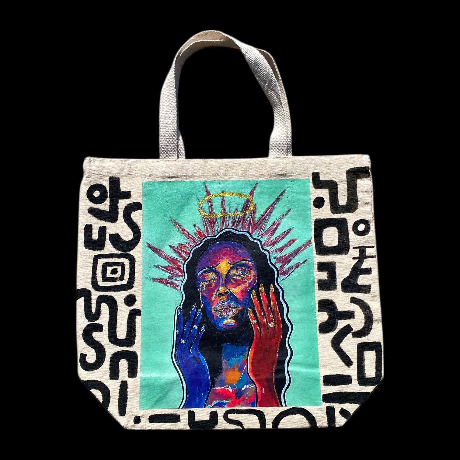 This tote is a visual interpretation of healing - a messy, painful, yet transformative journey that demands self-love, perspective, and acceptance. Though it may look chaotic on the outside, it elevates the beauty within.