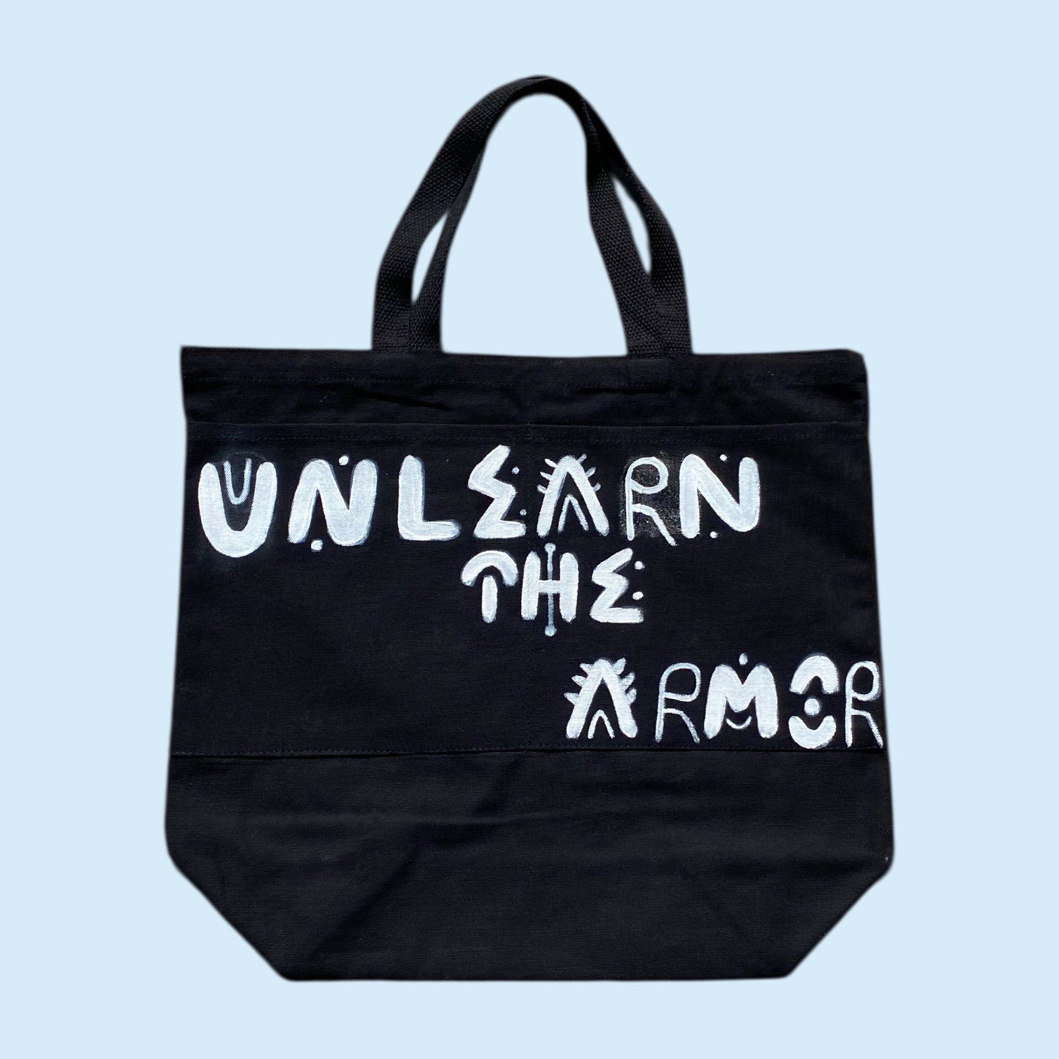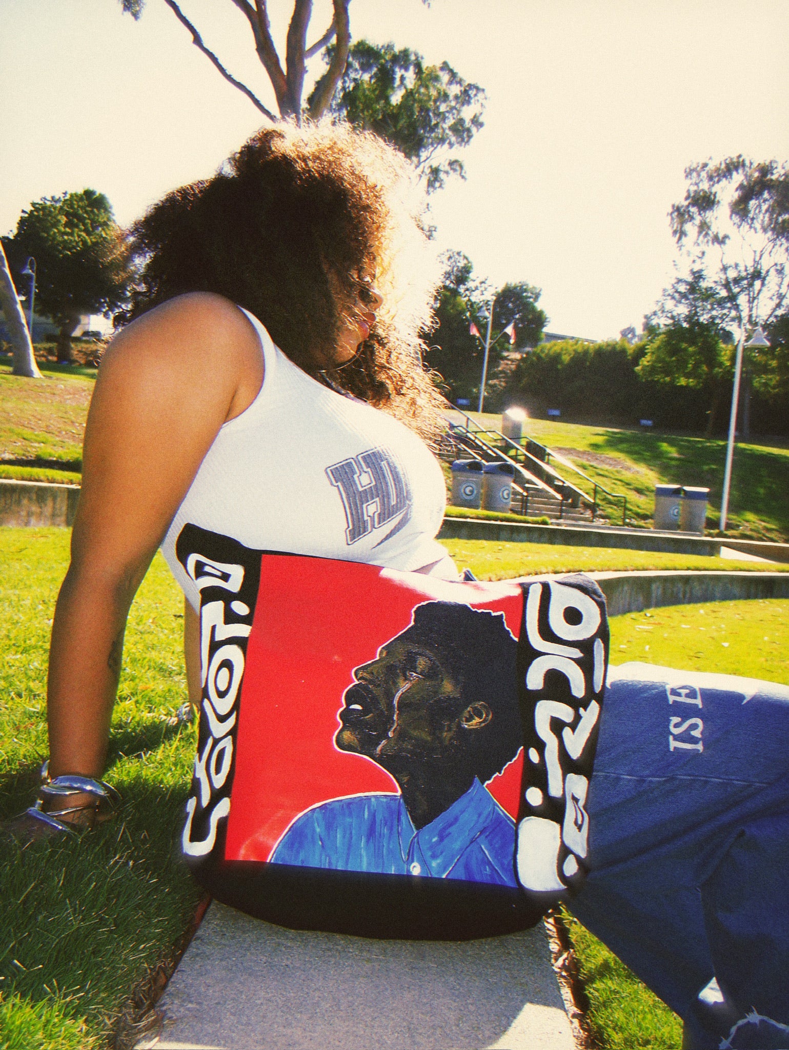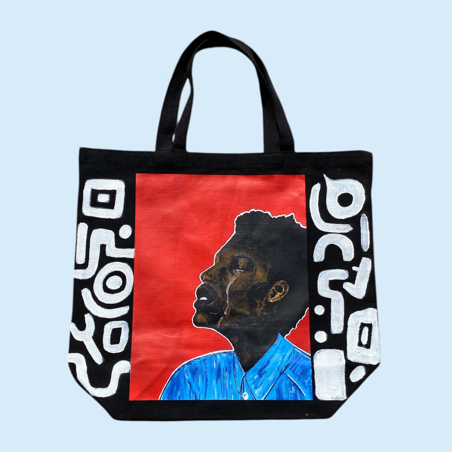 This bag challenges toxic masculinity in the Black community - confronting the harmful idea that showing emotion is weakness. True strength lies in vulnerability, and this painting calls for a shift from suppression to support, from "man up" to "I'm here for you."